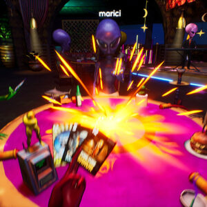 In this first-person, four-player, online multiplayer space adventure, every alien at the table must do whatever it takes to win in a variety of tabletop games. You’ll craft sneaky strategies, tell outrageous lies, and blow up the heads of so-called “friends.”