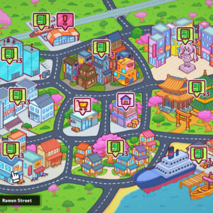 Start small with just a few machines and limited items. Pick your first area. Will you begin in the calm streets of Komorebi Homes or the busy, colorful Otaku Alley?